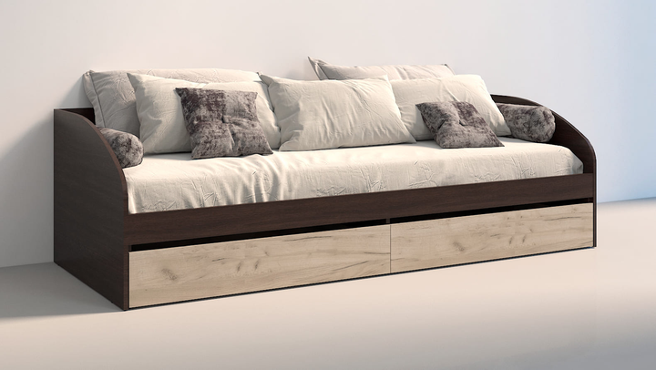 Ліжко з ящиками односпальне Брайт Майстер Форм 835 x 2032 x 600 h ( 800 х 2000) Венге магія / дуб білий крафт 91066