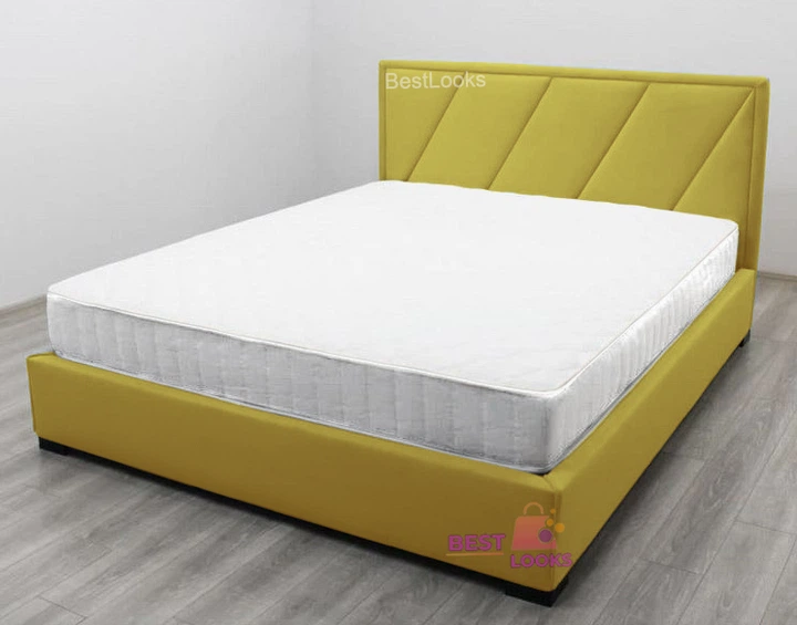 Ліжко полуторне 140x200 Місті Mebel-Day з підйомним механізмом Жаккард Жовтий Саванна Нова (09)