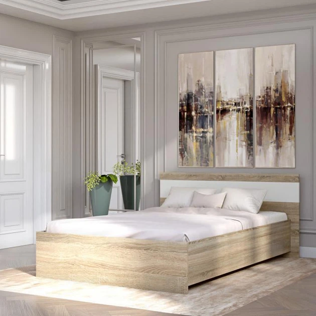Ліжко двоспальне MebelStar Б'янка 140x200 см Дуб тахо/Аляска білий (MBS-1030)