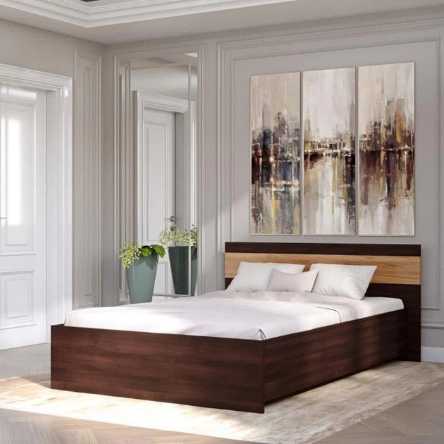 Ліжко двоспальне 140х200 см Еверест Венге темний + Дуб крафт золотий 211х153х80 см