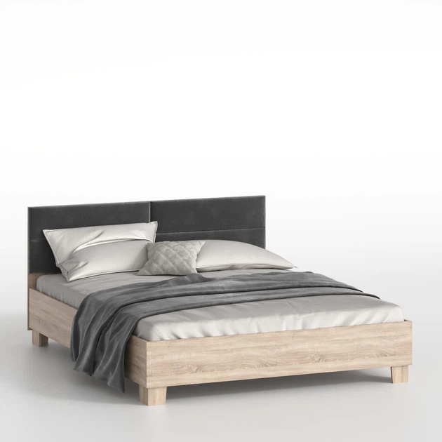 Ліжко двоспальне КЛ-1600 Лайт 160х200 Еверест Дуб сонома/Сірий (ламінована ДСП/тканина) (ламельний каркас/без матраца)