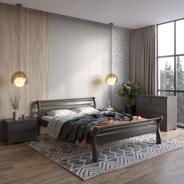 Двоспальне дерев'яне ліжко Mebigrand Верона Графітовий (RAL9011) 180х200 см (MBG-4499)
