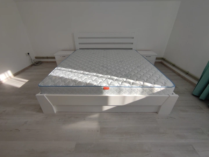 Полуторне ліжко з масиву дуба Лоренцо 120х190 з підйомним механізмом Біла емаль Крок ламелів 2,5 см.