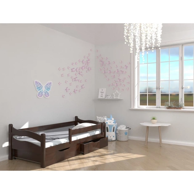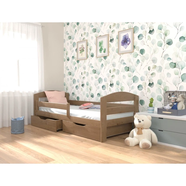 Ліжко односпальне в дитячу з натурального дерева з бортиком та ящиками 70х140 (без матраца) ТМ ЛУНА Злата горіх темний