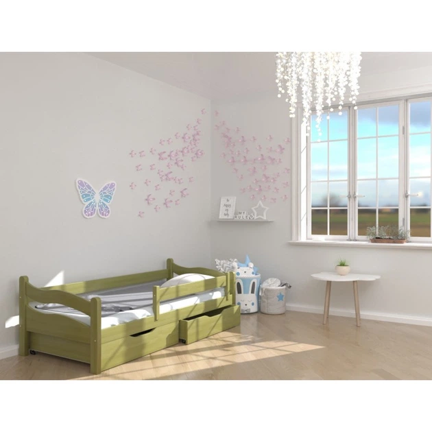 Ліжко односпальне в дитячу з натурального дерева з бортиком та ящиками 70х140 (без матраца) ТМ ЛУНА Злата хаккі