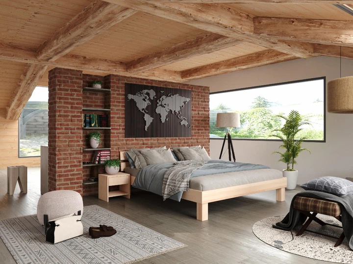Двоспальне ліжко з масиву вільхи Лаціо 200х190 Коричневий Барвник Tin 109 Крок ламелів 5,5 см.
