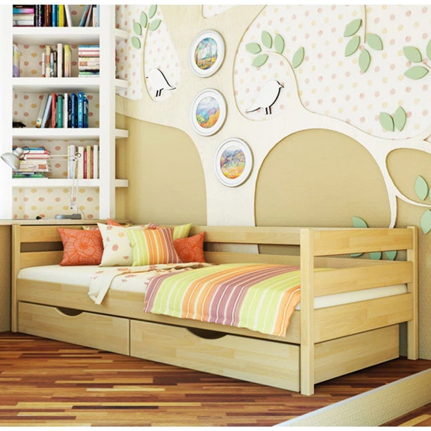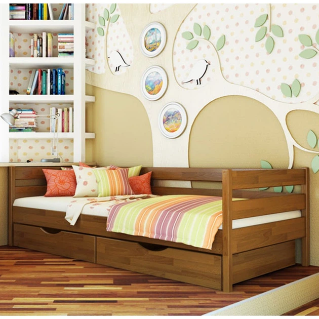 Ліжко односпальне в дитячу з ДСП Еко К-117 90x200 з висувними ящиками дуб натуральний Комфорт Меблі (без матраца)