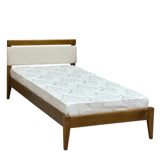 Односпальне дерев'яне ліжко з м'якою вставкою Скіф Л-157 тікове дерево / твіст-1 / 100х190