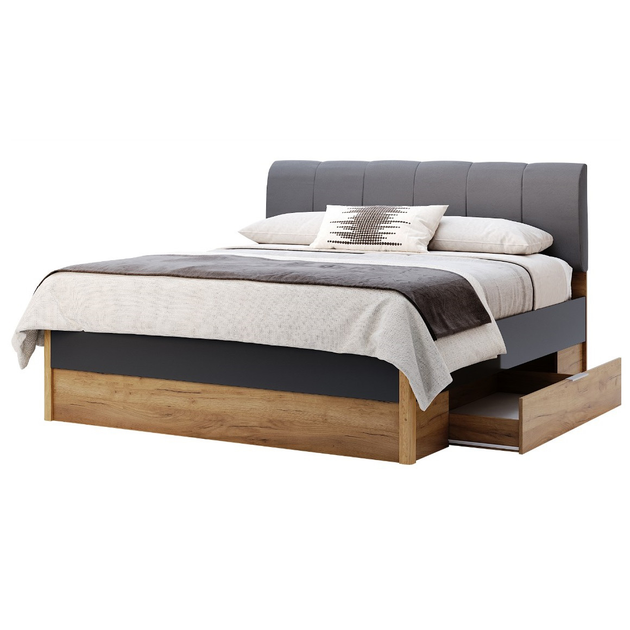 Ліжко двоспальне Рамона 180х200 см MiroMark RA-38-LV Дуб крафт + Чорний (ЛДСП) (з каркасом та висувними ящиками/без матраца)