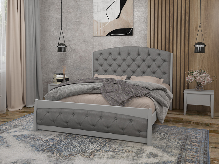 Ліжко двоспальне з натурального дерева/текстилю бук 180х200 Грація Люкс Арбор Дерев Сірий