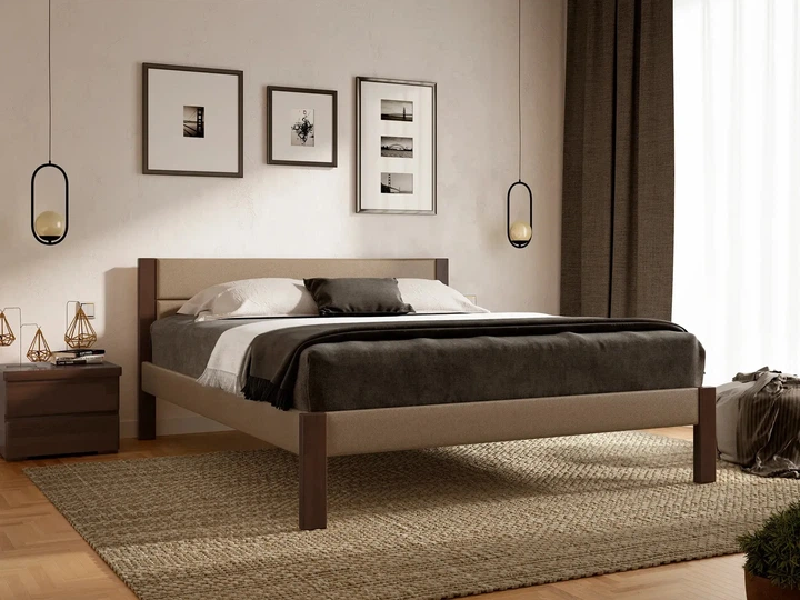 Ліжко двоспальне з натурального дерева бук 160х200 Лофт Арбор Дерево Темний горіх