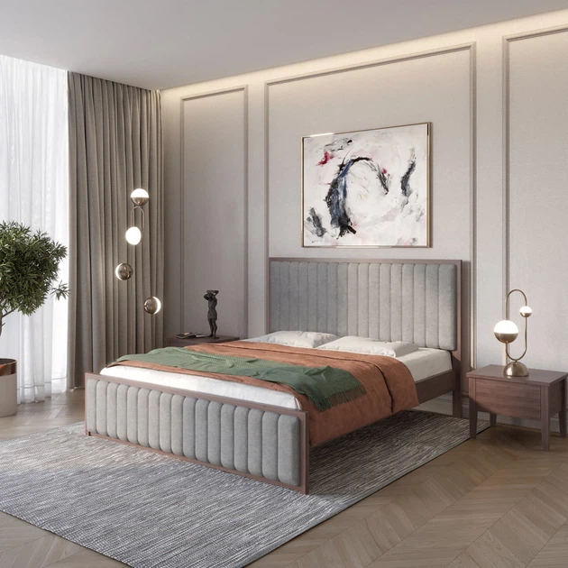 Односпальне дерев'яне ліжко Mebigrand Відень Горіх темний/Аляска 93 (Сірий) 80х190 см (MBG-10468)