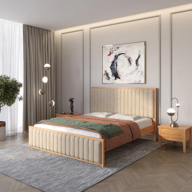 Односпальне дерев'яне ліжко Mebigrand Відень Горіх світлий/Аляска 23 (Бежевий) 80х190 см (MBG-10452)