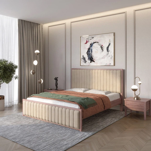 Односпальне дерев'яне ліжко Mebigrand Відень Горіх темний/Аляска 23 (Бежевий) 80х200 см (MBG-10913)