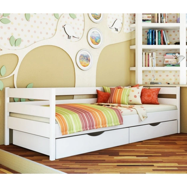 Односпальне ліжко з масиву дуба Модена 90х190 Біла емаль Крок ламелів 4,5 см.
