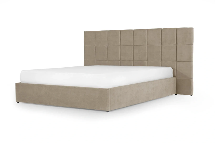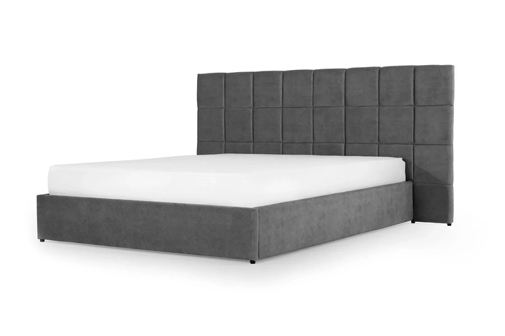 Ліжка двоспальні м'які з підйомним механізмом MeBelle TALLY 160х200 см, сірий преміальний велюр, рогожка