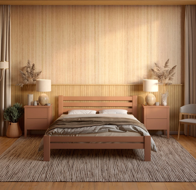 Односпальне дерев'яне ліжко Mebigrand Прем'єра Коричневий (RAL8025) 80х200 см (MBG-2822)