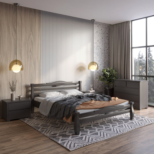 Односпальне дерев'яне ліжко Mebigrand Монако Графітовий (RAL9011) 90х200 см (MBG-4328)