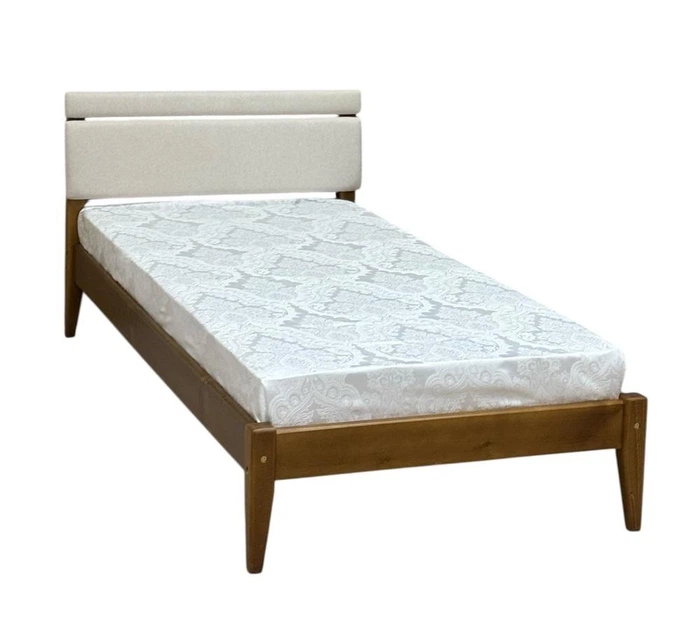 Односпальне дерев'яне ліжко з м’яким узголів’ям Скіф Л-158 тікове дерево / твіст-1 / 100х200