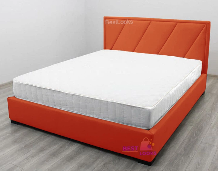 Ліжко полуторне 140x190 Кліо-1 Mebel-Day з підйомним механізмом Велюр Помаранчевий Алоба (17)