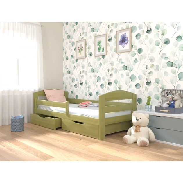 Ліжко односпальне в дитячу з натурального дерева 80х160 з бортиком і ящиками (без матраца) Хюго ТМ ЛУНА хаккі
