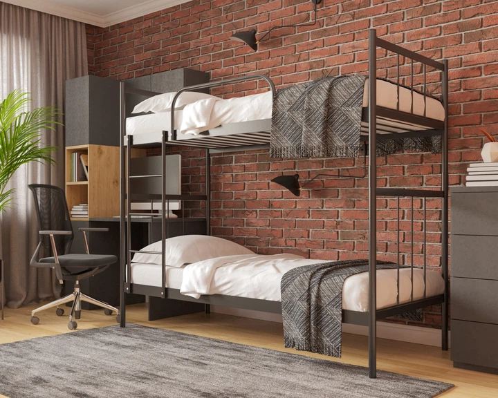 Ліжко-Трансформер Twins Duo металеве двоярусне 190х90 см Чорний