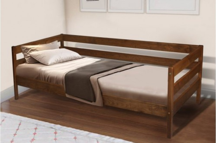 Ліжко односпальне на дерев'яних ніжках Мікс Меблі Глорія темний горіх 120см