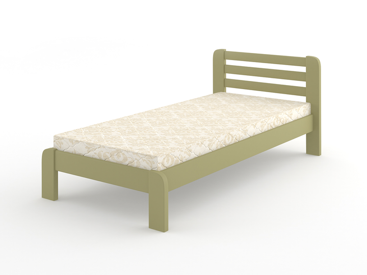 Ліжко односпальне 90х200 Лівія MebiGrand RAL1020 Оливково-жовтий (натуральне дерево) (з ламелями/без ящиків/без матраца)