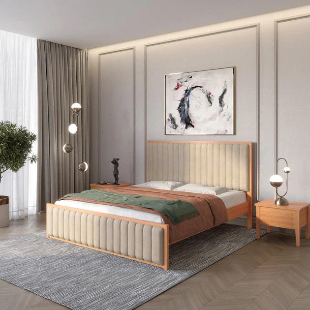 Односпальне дерев'яне ліжко Mebigrand Відень Горіх лісовий/Аляска 23 (Бежевий) 90х200 см (MBG-10947)