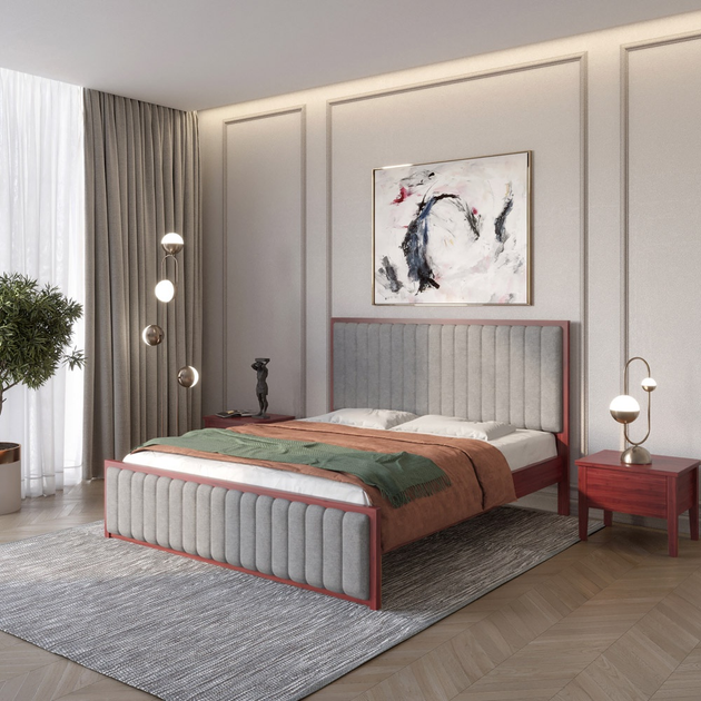 Односпальне дерев'яне ліжко Mebigrand Відень Махонь/Аляска 93 (Сірий) 80х190 см (MBG-10464)