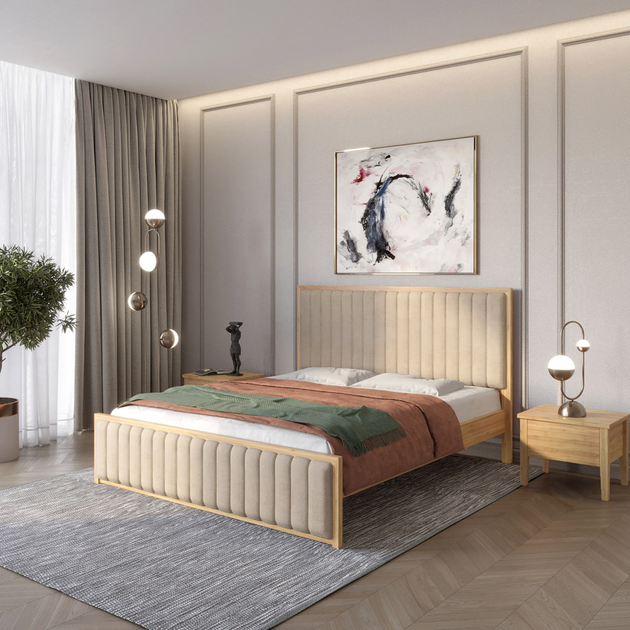 Односпальне дерев'яне ліжко Mebigrand Відень Горіх світлий/Аляска 23 (Бежевий) 90х190 см (MBG-10739)