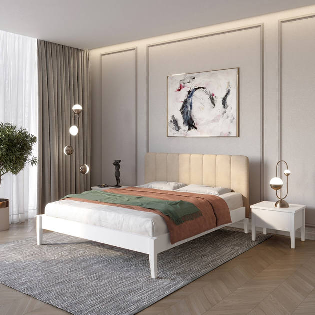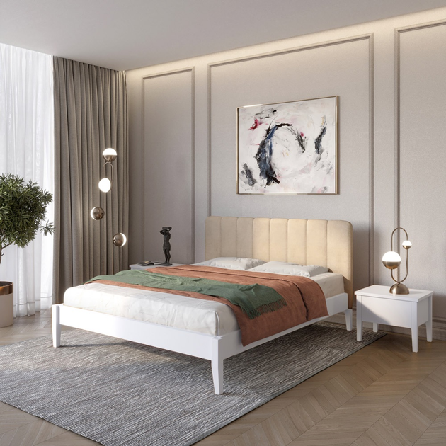 Односпальне дерев'яне ліжко Mebigrand Венеція ДК Білий (RAL9003)/Аляска 23 (Бежевий) 90х200 см (MBG-5778)