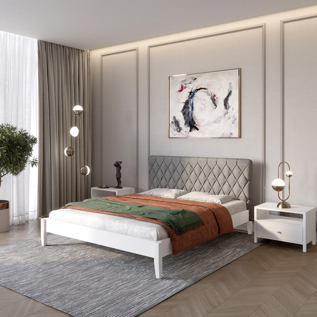 Односпальне дерев'яне ліжко Mebigrand Венеція ДК Білий (RAL9003)/Аляска 93 (Сірий) 90х200 см (MBG-5522)