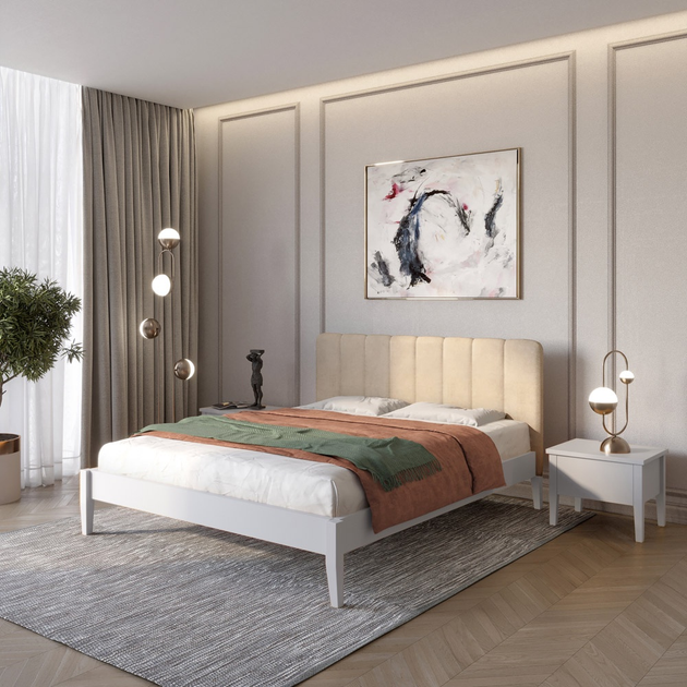 Односпальне дерев'яне ліжко Mebigrand Лондон ДК Білий (RAL9003)/Аляска 23 (Бежевий) Б1 90х200 см (MBG-6870)
