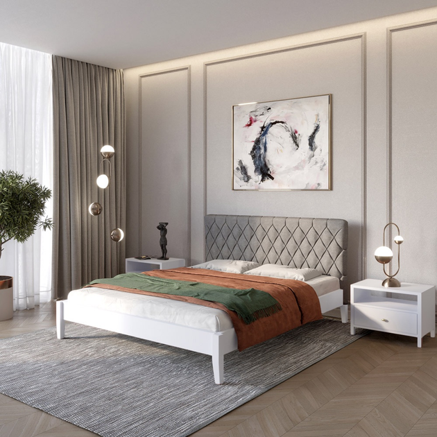 Односпальне дерев'яне ліжко Mebigrand Венеція ДК Білий (RAL9003)/Аляска 93 (Сірий) 90х200 см (MBG-5522)
