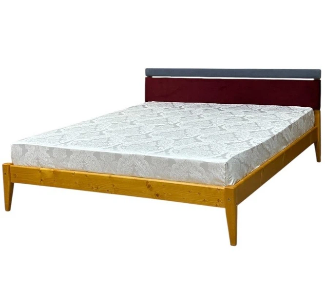 Двоспальне дерев’яне ліжко з м'яким узголів'ям Скіф Л-258 бурштин / стім 26 140х210