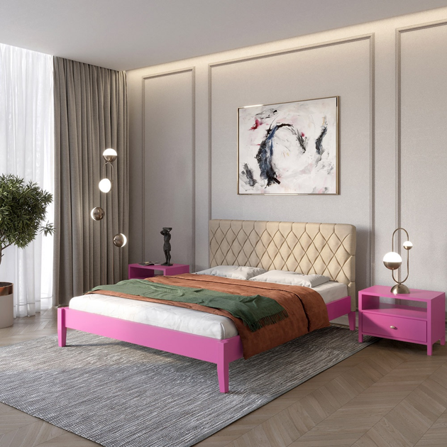 Односпальне дерев'яне ліжко Mebigrand Венеція ДК Рожевий (S2060R30B)/Аляска 23 (Бежевий) 90х190 см (MBG-5873)