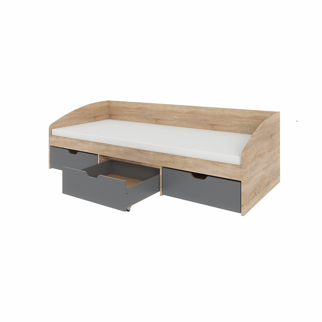 Односпальне ліжко з ящиками Комфорт-3 Єверест (193.2*83.5*59 cм) Сонома+Сірий