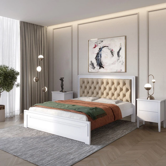 Двоспальне дерев'яне ліжко Mebigrand Торонто Т6 Бежевий (S2005Y50R)/Аляска 23 (Бежевий (S2005Y50R)) 140х200 см (MBG-9547)