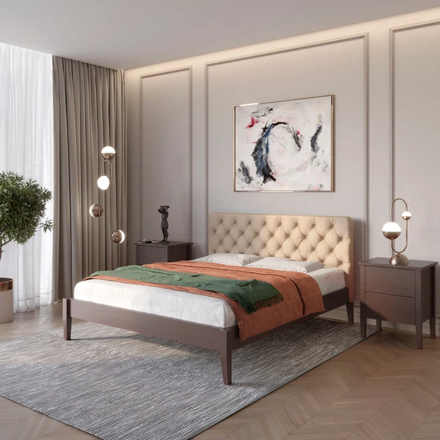 Двоспальне дерев'яне ліжко Mebigrand Рим ДК Венге/Аляска 23 (Бежевий) Б3 160х200 см (MBG-4939)