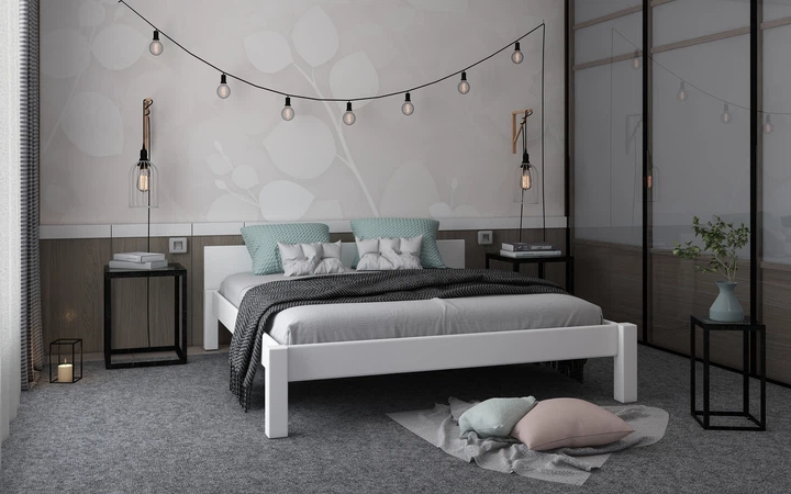 Ліжко із натурального дерева сосна Комфорт 160x200 білий Stemma