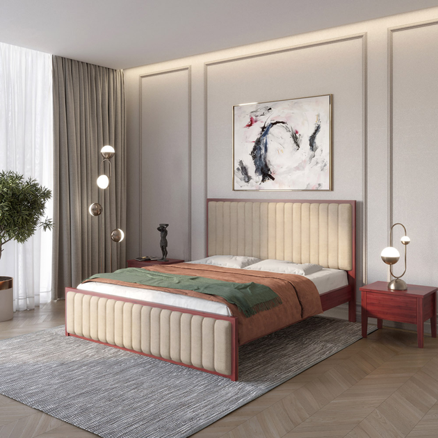 Односпальне дерев'яне ліжко Mebigrand Відень Махонь/Аляска 23 (Бежевий) 90х200 см (MBG-10943)