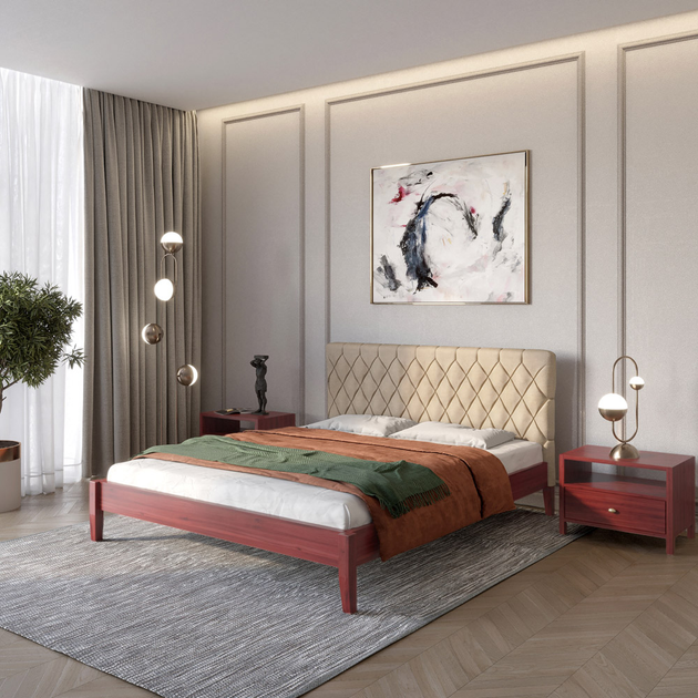 Односпальне дерев'яне ліжко Mebigrand Лондон ДК Махонь/Аляска 23 (Бежевий) Б1 80х200 см (MBG-6644)
