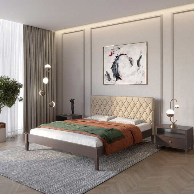 Односпальне дерев'яне ліжко Mebigrand Лондон ДК Венге/Аляска 23 (Бежевий) Б1 80х200 см (MBG-6475)