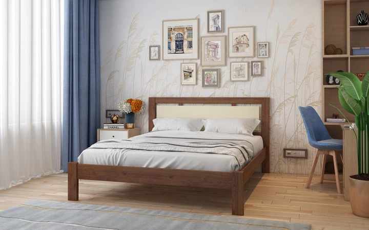 Ліжко з натурального дерева Прайм 160x200 махонь/айворі Stemma