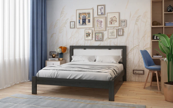Двоспальне дерев'яне ліжко Mebigrand Лондон ДК Махонь/Аляска 93 (Сірий) Б1 160х200 см (MBG-6652)