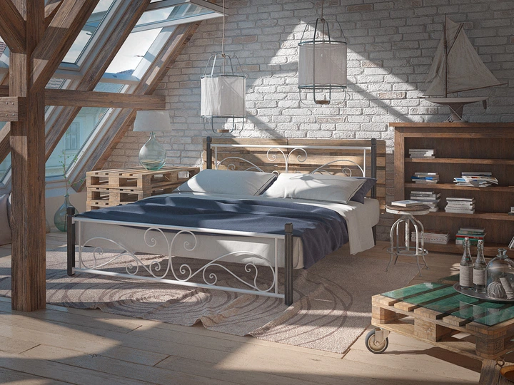 Двоспальне металеве ліжко на дерев'яних ніжках Нарцис від ТМ Теnero 160х190, Щит ДВП,