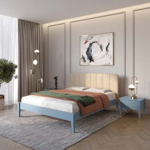 Двоспальне дерев'яне ліжко Mebigrand Лондон ДК Сіро-синій (S7010R90B)/Аляска 23 (Бежевий) Б1 160х200 см (MBG-6918)