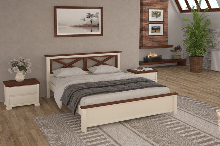 Двоспальне ліжко Mebigrand Прованс Н Айворі/Горіх лісовий 140х200 см (MBG-1576)