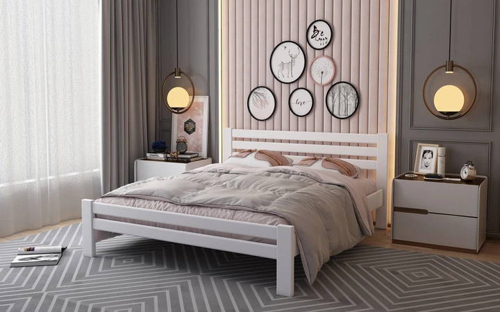 Двоспальне ліжко з масиву бука Палермо 180х220 Біла емаль Крок ламелів 5,5 см.